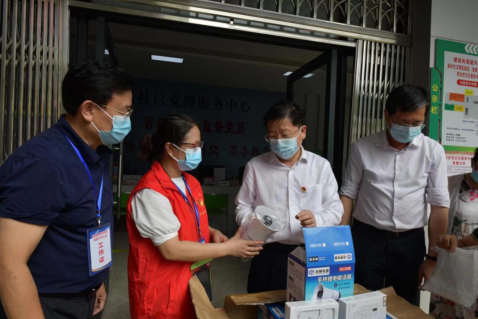 作表率,当好“领头雁”。在霞山区建设街道建兴社区,局党组书记、局长李曜率队指导疫情防控工作,并赠送面罩、手套、消毒液、防护服、防护口罩、外科口罩、充电喇叭等一批防疫物资,积极支援社区疫情防控。