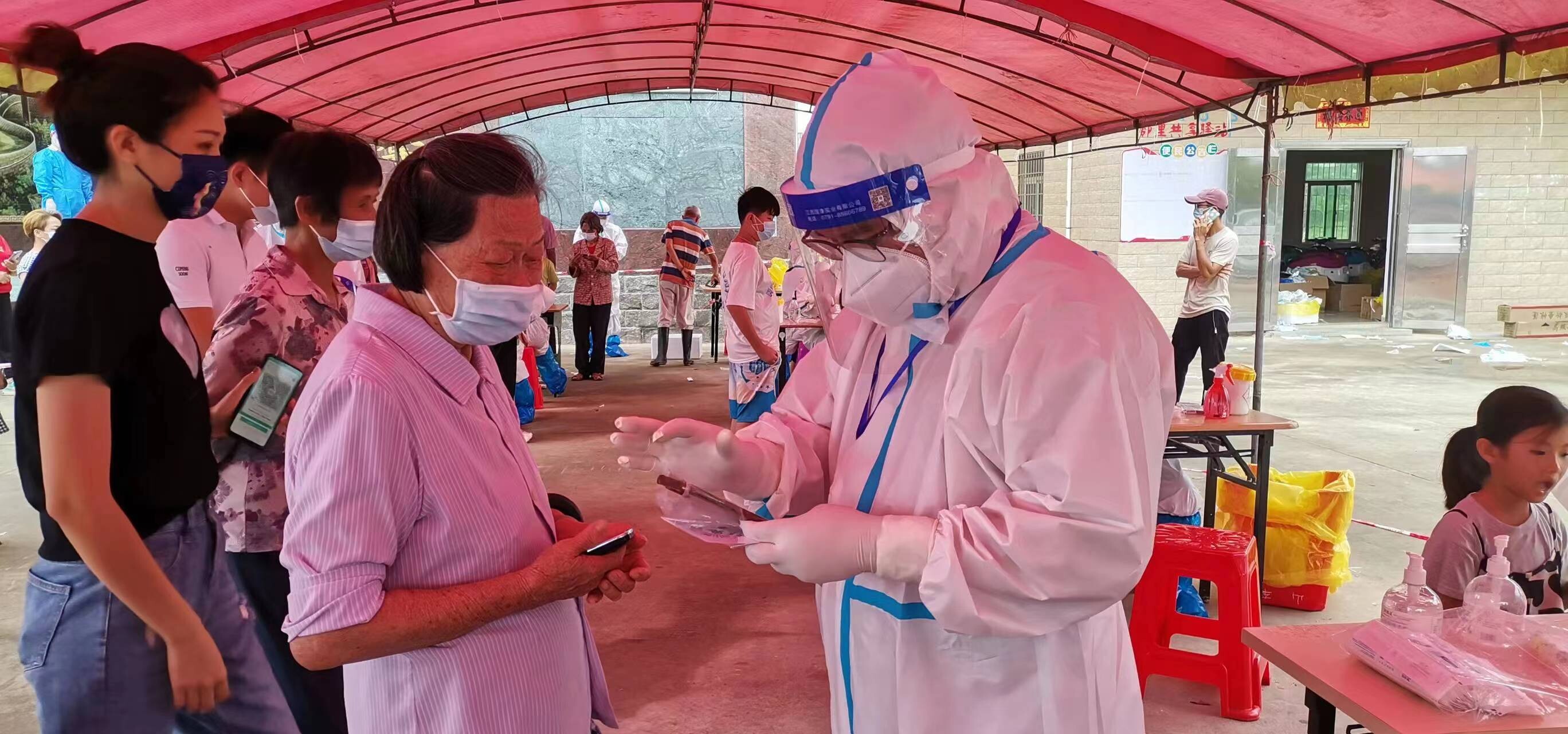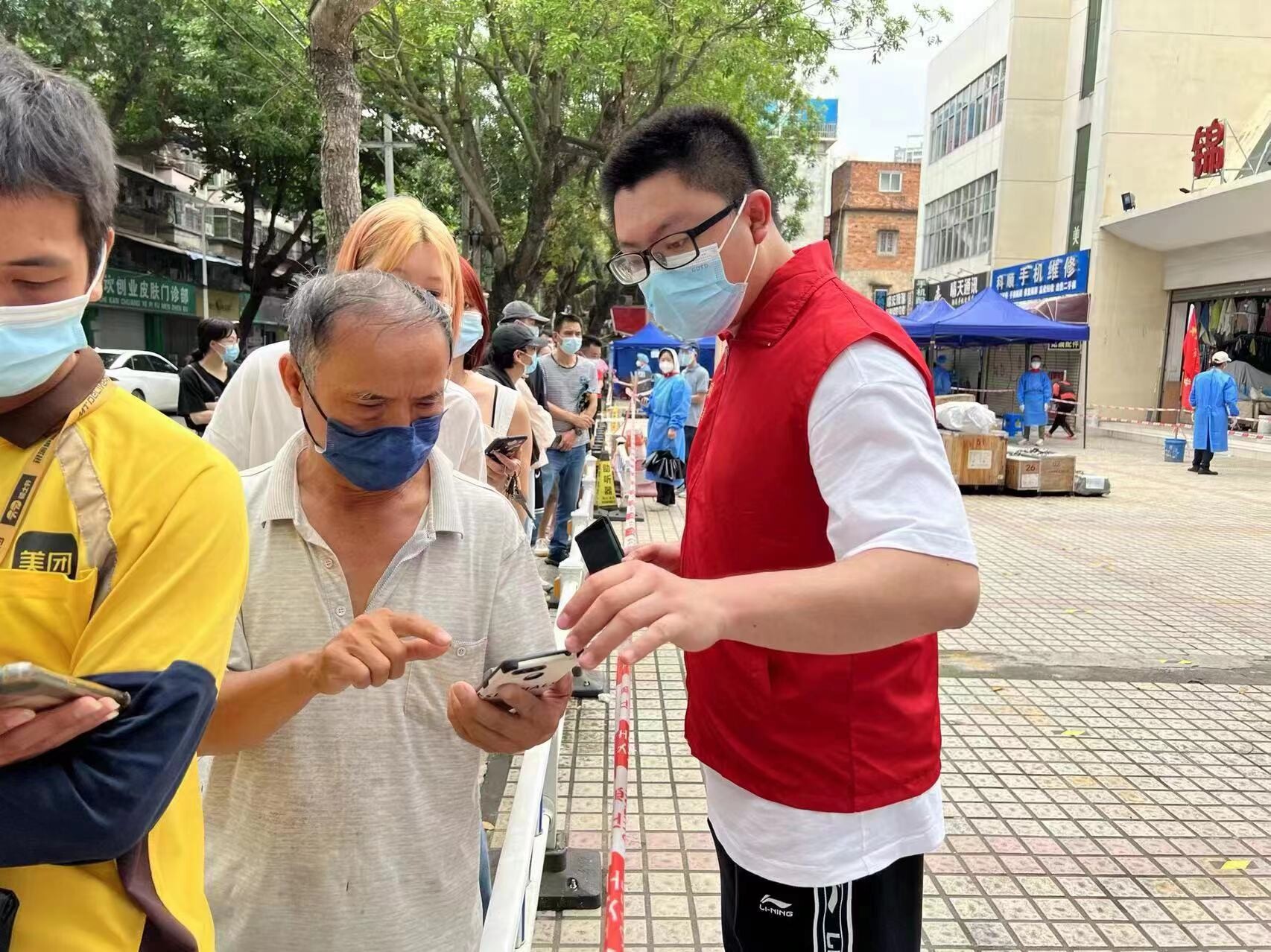 扑下身,当好“排头兵”。在赤坎区民主街道锦丽广场核酸检测点,5名青年党员责任在肩,下沉一线,积极配合社区开展核酸检测志愿服务工作,悉心指导市民群众做好核酸检测场所码、核酸码等信息录入和验证工作,维护现场秩序,日均服务社区检测群众2500余人,用汗水默默诠释党员干部的责任和担当。