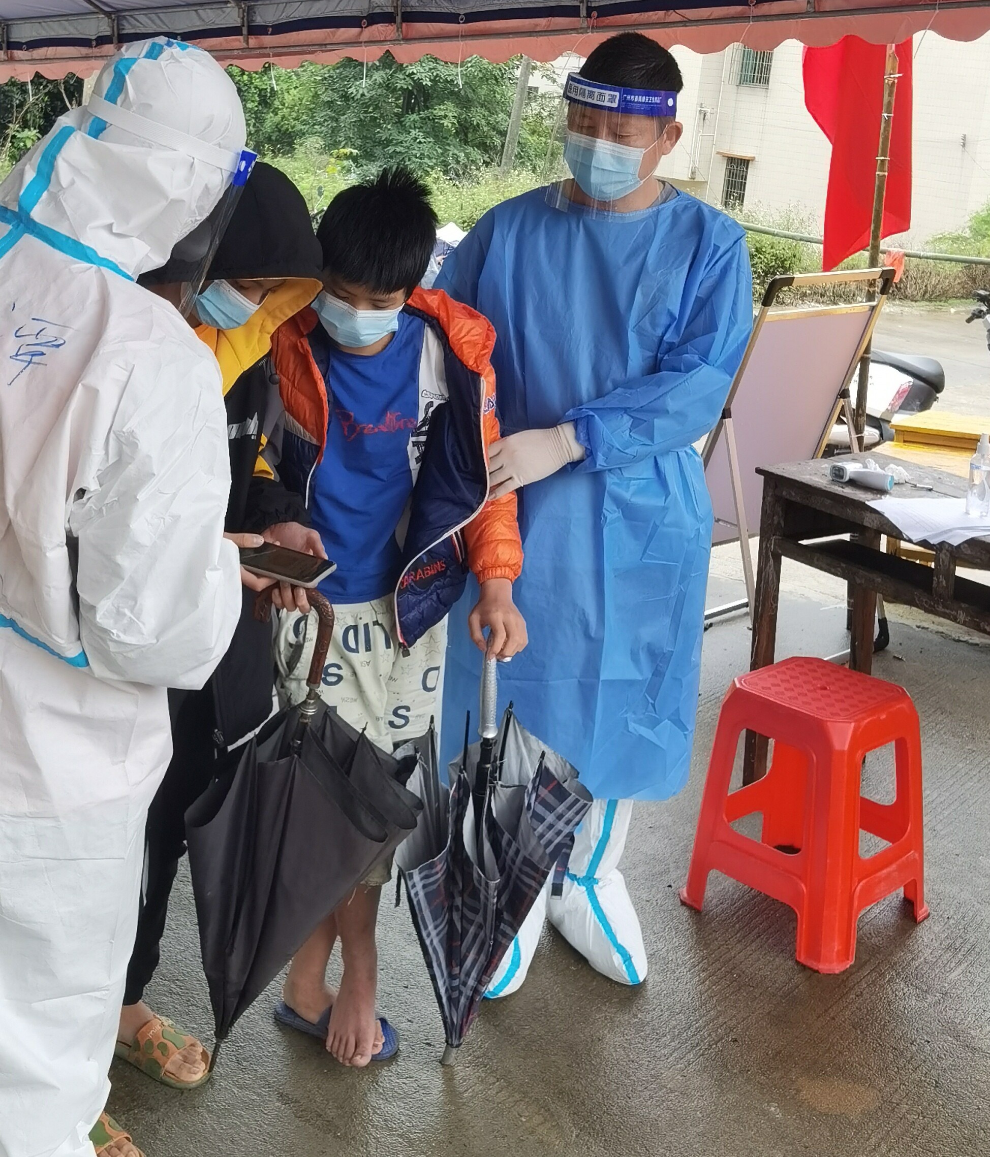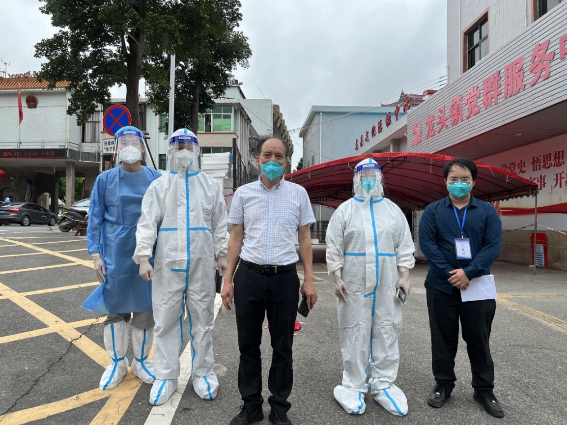 张金海是坡头区龙头镇抗疫党员志愿先锋队一队的队长,整个队伍37人,来自市财政局、市水务局等7个不同单位,从59日志愿者集结的那天起,他临危受命,被任命为龙头镇防控组组长,也是从那一刻起,他便忙碌于同组人员不同单位之间、组员与龙头镇镇委镇政府之间、组员与市直机关工委之间,从队员的生活物资保障、宿舍生活设施改造,到队员值班交通保障、抗疫工作的流调安排,他的电话铃声几乎没有停过。在沟通协调的同时,他还要与队员一起参加一线疫情防控工作,有人问他累不累,要不休息1天?”他打趣说道:“苦不苦,想想长征两万五,累不累,想想革命老前辈。”